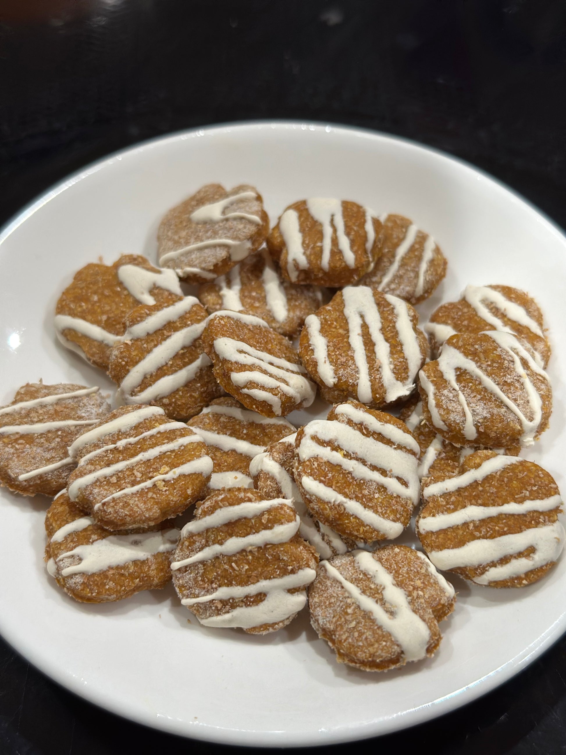 Ingredients: Whole Wheat Flour, Pumpkin Puree, Egg, Honey.