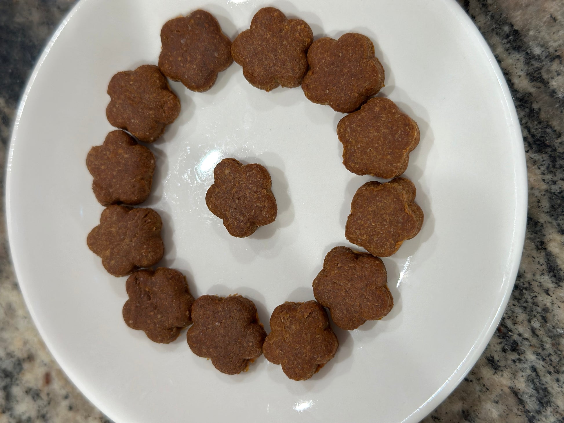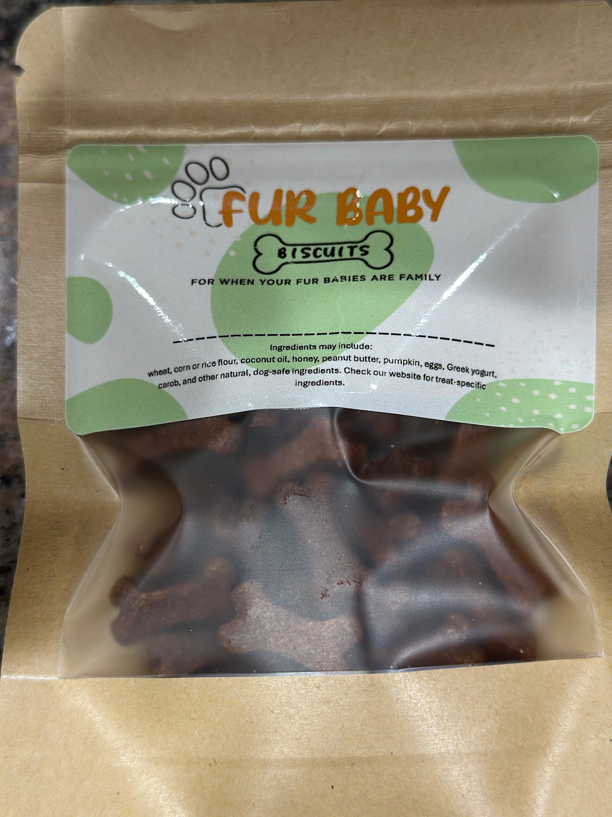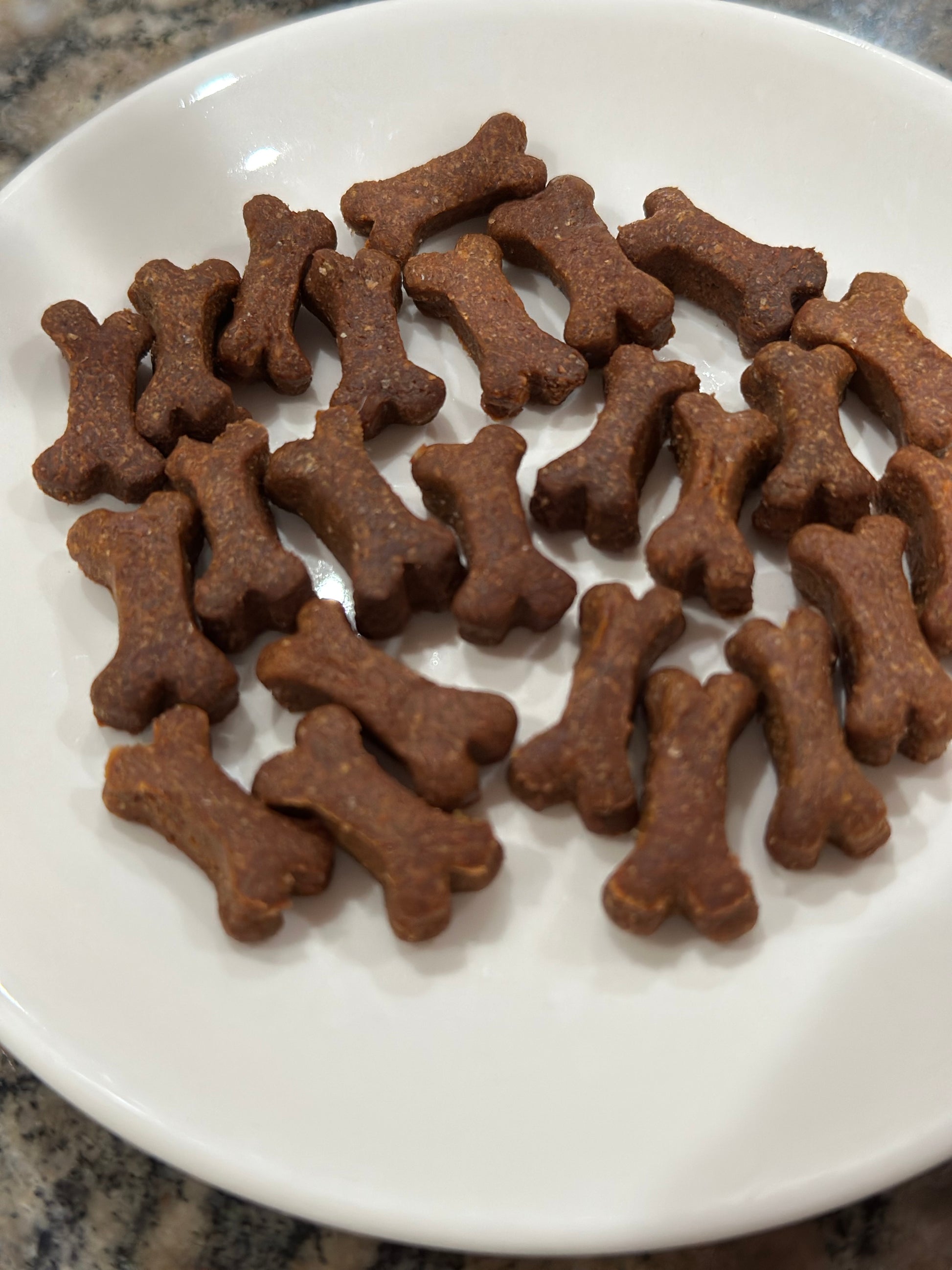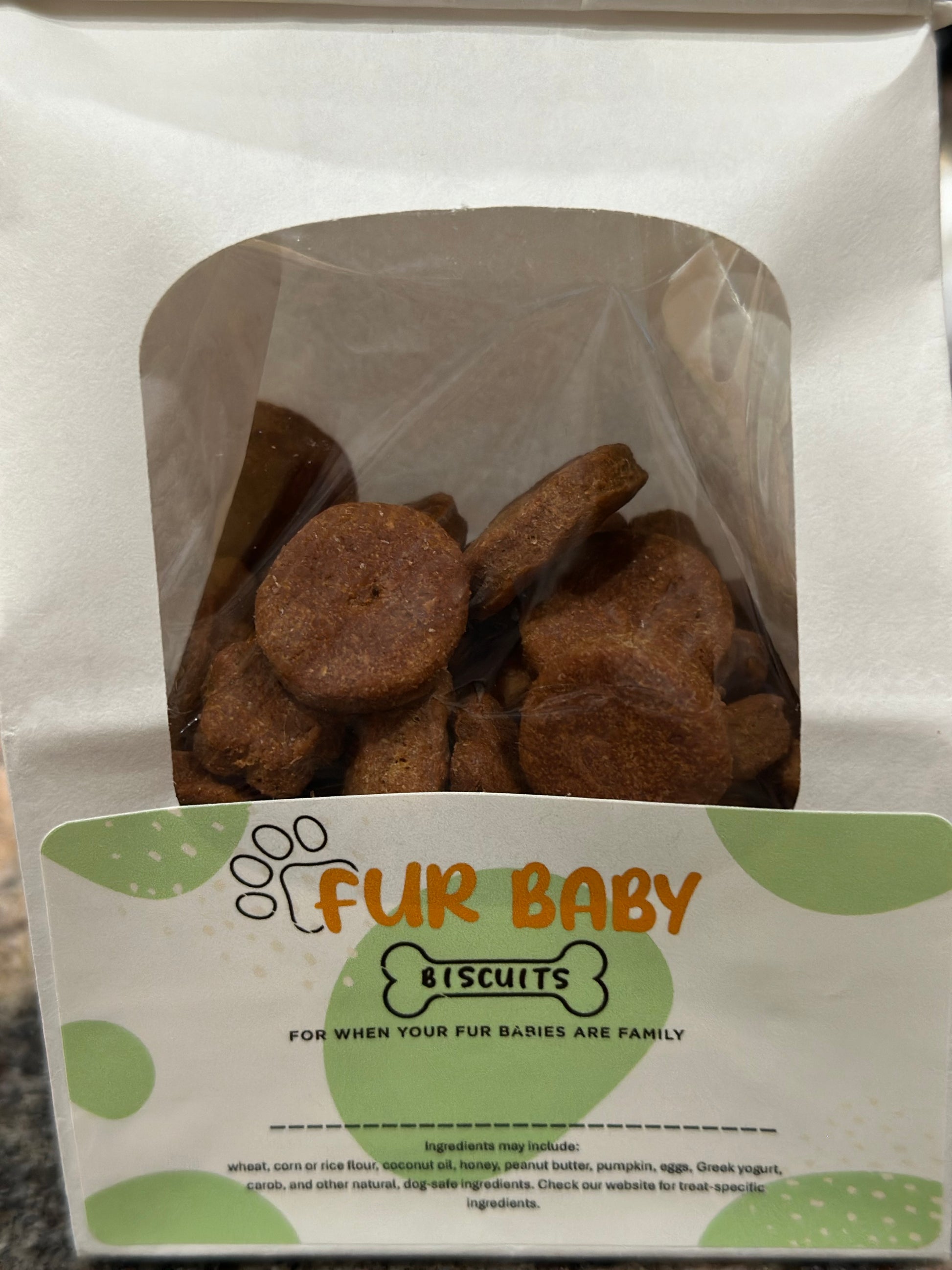 Ingredients: Whole Wheat Flour, Peanut Butter, Pumpkin Puree or Banana Puree, Egg, Honey